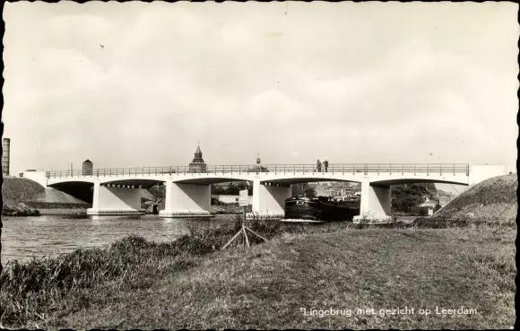 Ak Leerdam Südholland, Teilansicht mit Lingebrug