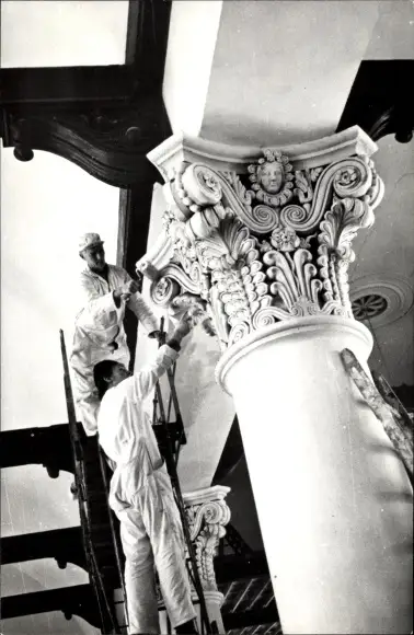Ak Leeuwarden Friesland, Architekturdetail, Säule, Stukkateure