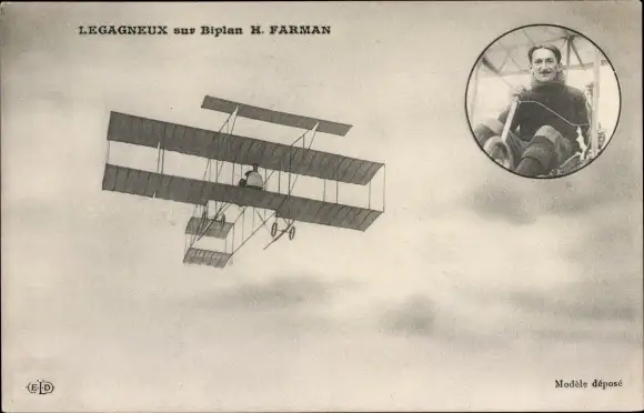 Ak Legagneux sur Biplan H. Farman, Flugpionier