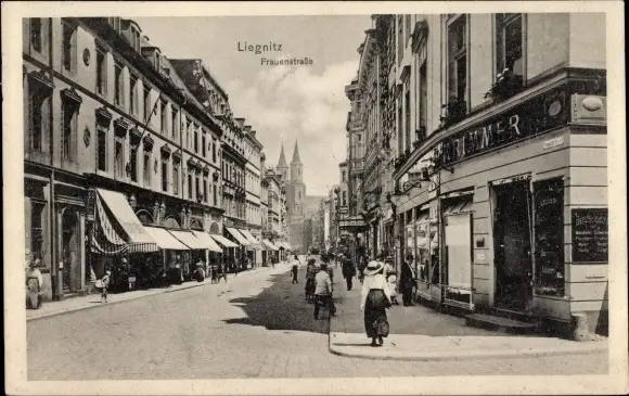 Ak Legnica Liegnitz Schlesien, Frauenstraße, Geschäfte