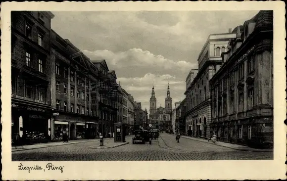 Ak Legnica Liegnitz Schlesien, Ring, Kirche, Geschäfte