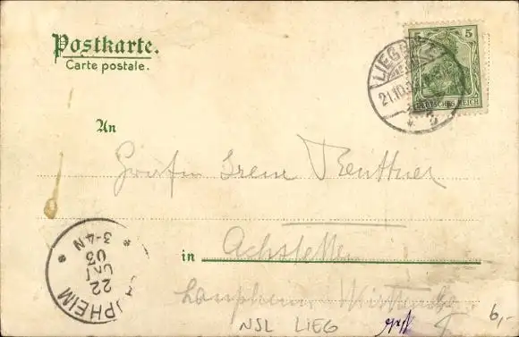 Zustand, siehe Scan, gelaufen, 1903 - ca 5 cm X 3 cm