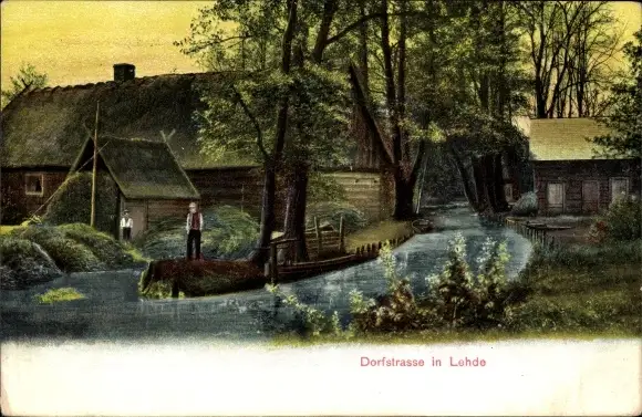 Ak Lehde Lübbenau im Spreewald, Dorfstraße, Häuser am Wasser
