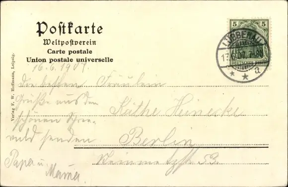 Zustand, siehe Scan, gelaufen, 1907 - ca 14 cm X 9 cm