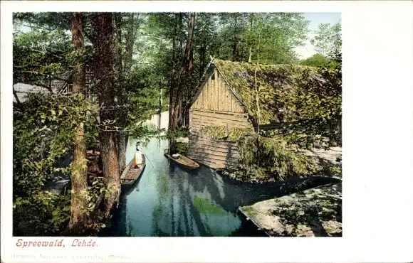Ak Lehde Lübbenau im Spreewald, Partie im Spreewald, Boot