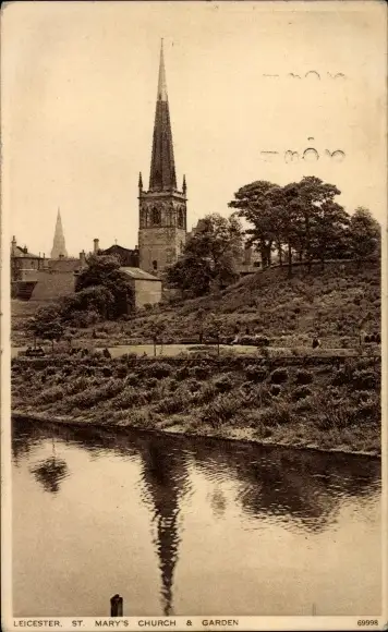 Ak Leicester East Midlands England, St. Mary's Kirche mit Garten