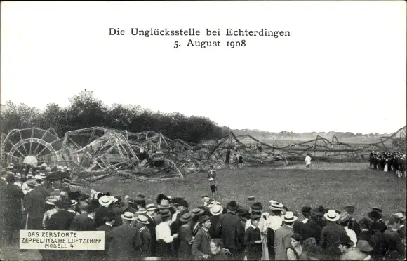 Ak Leinfelden-Echterdingen Baden Württemberg, LZ 4 Katastrophe 1908, Luftschiff, Zeppelin