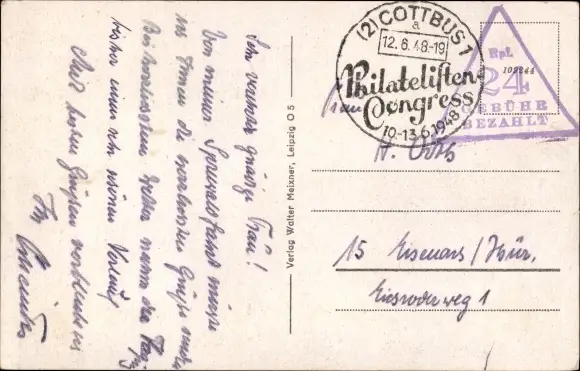 Zustand, siehe Scan, gelaufen, 1948 - ca 14 cm X 9 cm