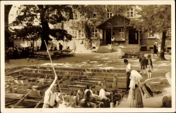 Ak Leipe Lübbenau im Spreewald, Treppe, Boot