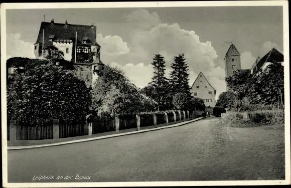 Ak Leipheim an der Donau Schwaben, Straßenpartie, Kirche