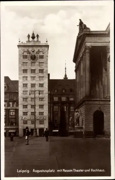 Ak Leipzig, Augustusplatz mit neuem Theater und Hochhaus