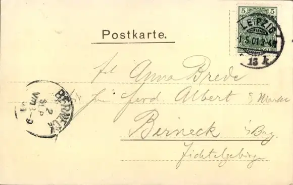 Zustand, siehe Scan, gelaufen, 1901 - ca 14 cm X 9 cm