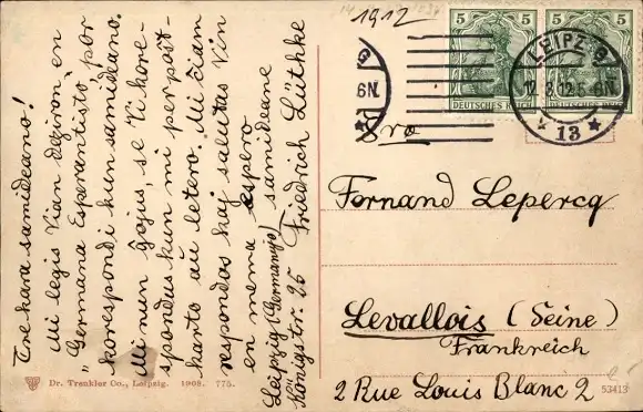 Zustand siehe Scan, gelaufen, 1912 - ca 14 cm X 9 cm