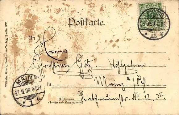 Zustand, siehe Scan, gelaufen, 1899 - ca 14 cm X 9 cm