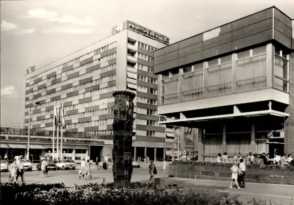 Ak Leipzig, Sachsenplatz mit Postsäule