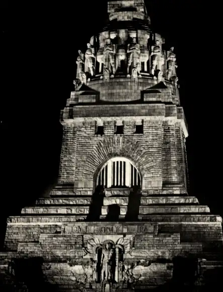 Ak Leipzig, Völkerschlachtdenkmal, Nachtbeleuchtung
