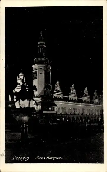Ak Leipzig in Sachsen, Altes Rathaus, Beleuchtung