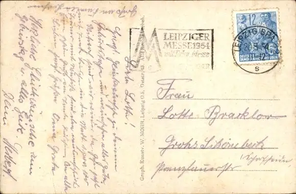 Zustand, siehe Scan, gelaufen, 1954 - ca 14 cm X 9 cm