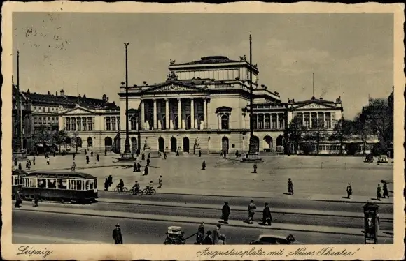 Ak Leipzig in Sachsen, Augustusplatz, Neues Theater, Straßenbahn