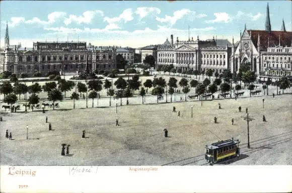 Ak Leipzig in Sachsen, Augustusplatz, Straßenbahn