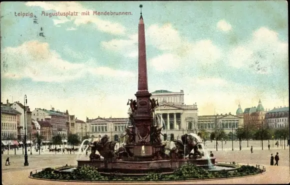 Ak Leipzig in Sachsen, Augustusplatz mit Mendebrunnen