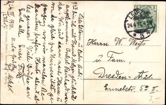 Zustand, siehe Scan, gelaufen, 1911 - ca 14 cm X 9 cm