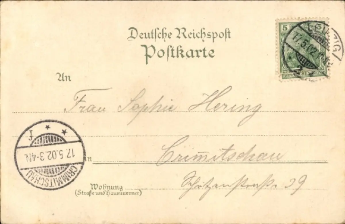 Zustand siehe Scan, 1902, gelaufen - ca 14 cm X 9 cm