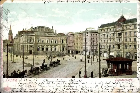 Ak Leipzig in Sachsen, Blücherplatz, Kutschen