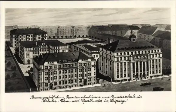 Ak Leipzig in Sachsen, Bundesgeschäftshaus des Arbeiter Turn und Sportbundes, Wohnhäuser