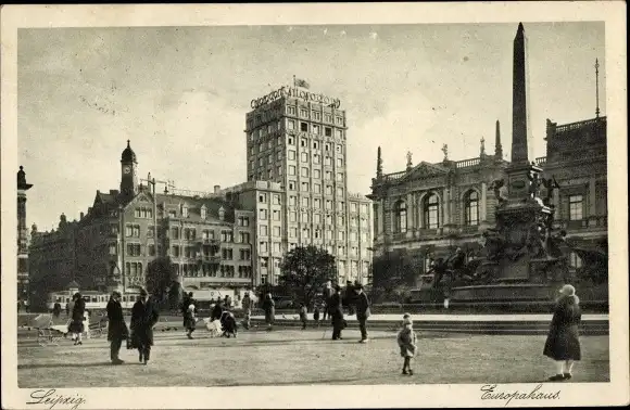 Ak Leipzig in Sachsen, Europahaus, Obelisk