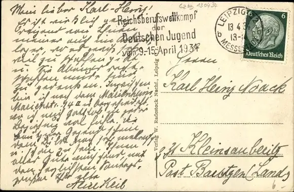 Zustand, siehe Scan, gelaufen, 1934 - ca 14 cm X 9 cm
