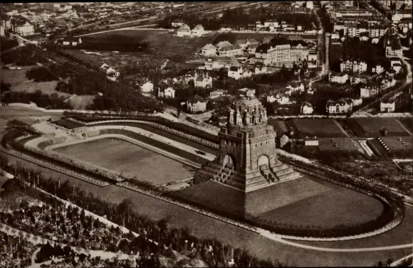 Ak Leipzig in Sachsen, Fliegeraufnahme vom Völkerschlachtdenkmal