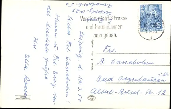 Zustand, siehe Scan, gelaufen, 1955 - ca 14 cm X 9 cm