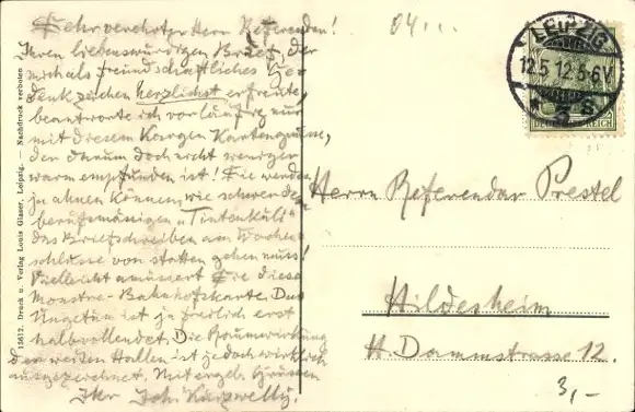 Zustand, siehe Scan, gelaufen, 1912 - ca 14 cm X 9 cm