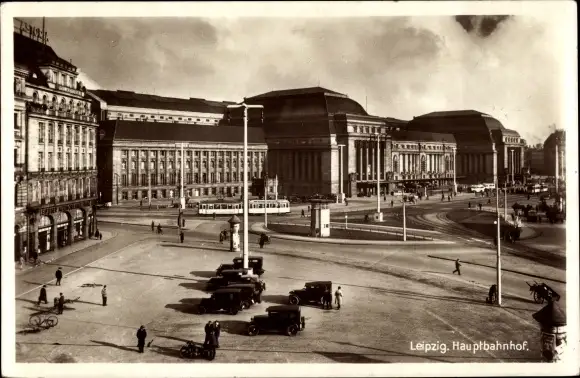 Ak Leipzig in Sachsen, Hauptbahnhof, Außenansicht, Straßenbahn