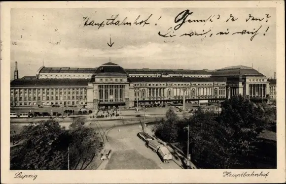 Ak Leipzig in Sachsen, Hauptbahnhof, Straßenbahn
