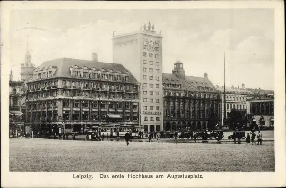 Ak Leipzig in Sachsen, Hochhaus am Augustusplatz
