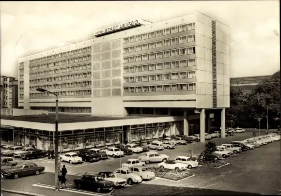 Ak Leipzig in Sachsen, Interhotel Stadt Leipzig, Parkplatz
