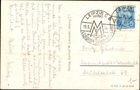 Zustand, siehe Scan, gelaufen, 1954 - ca 14 cm X 9 cm