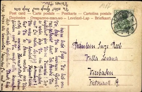 Zustand, siehe Scan, gelaufen, 1907 - ca 14 cm X 9 cm