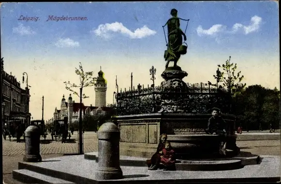 Ak Leipzig in Sachsen, Mägdebrunnen
