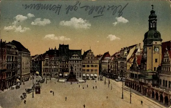 Ak Leipzig in Sachsen, Markt, Denkmal