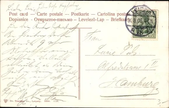 Zustand, siehe Scan, gelaufen, 1906 - ca 14 cm X 9 cm