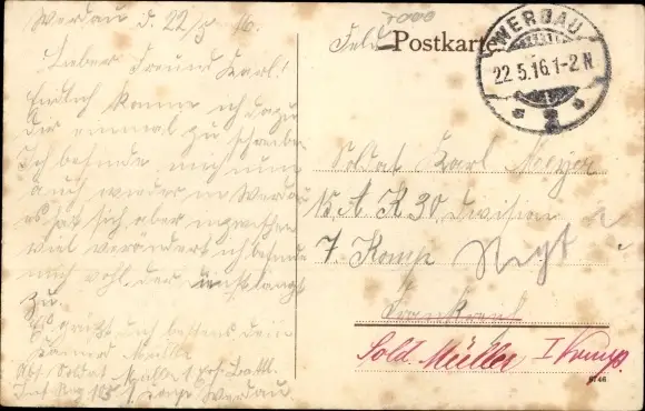 Zustand, siehe Scan, gelaufen, 1916 - ca 14 cm X 9 cm