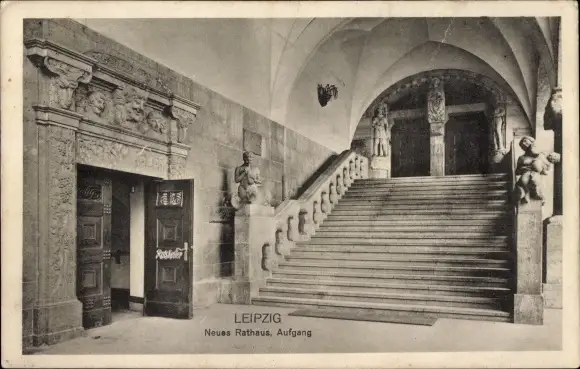 Ak Leipzig in Sachsen, Neues Rathaus, Aufgang