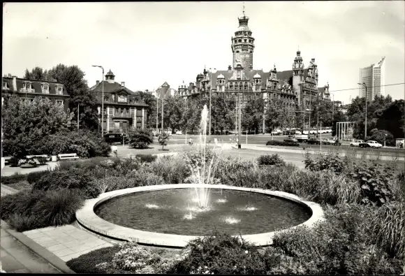 Ak Leipzig in Sachsen, Neues Rathaus, Springbrunnen