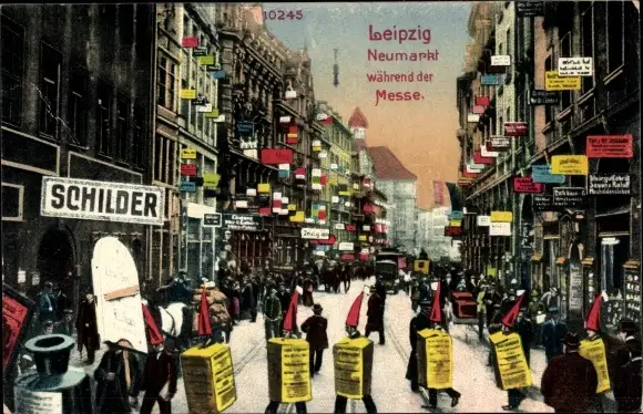 Ak Leipzig in Sachsen, Neumarkt während der Messe, Schilder