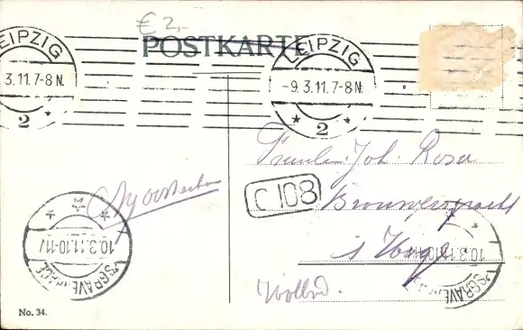 Zustand, siehe Scan, gelaufen, 1911 - ca 14 cm X 9 cm