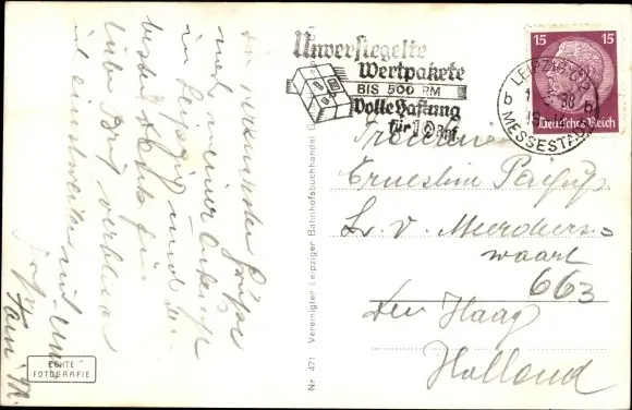 Zustand, siehe Scan, gelaufen, 1938 - ca 14 cm X 9 cm