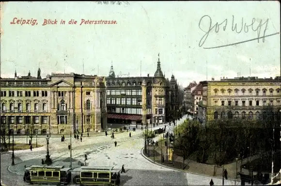 Ak Leipzig in Sachsen, Petersstraße, Straßenbahn